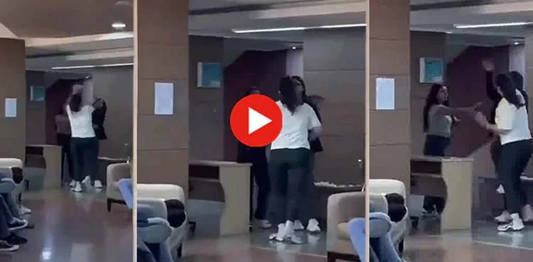 سوشل میڈیا پر کالج کے کیمپس میں دو لڑکیوں کی لڑائی کی ویڈیو وائرل ہورہی ہے جس میں انہیں ایک دوسرے کو تھپڑ مارتے دیکھا جاسکتا ہے۔