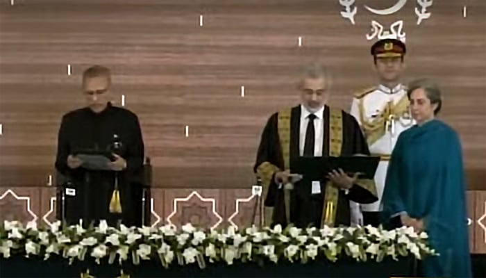 جسٹس قاضی فائز عیسیٰ نے سپریم کورٹ کے چیف جسٹس کے عہدے کا حلف اٹھا لیا صدر مملکت عارف علوی نے ان سے حلف لیا۔