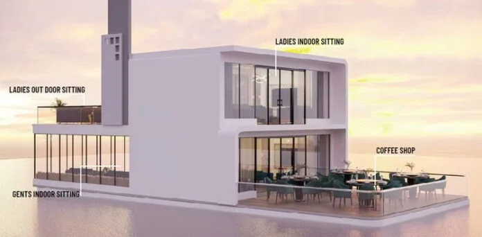 حکام کے مطابق سمندر کے اوپر تعمیر ہونے والی دو منزلوں میں اسلامی لیکچر اور ورکشاپس کیلئے ہال بنایا جارہا ہے۔ یہ مسجد زمین سے بھی جڑی ہوگی، مسجد کا تعمیراتی کام آخری مراحل میں ہے۔
