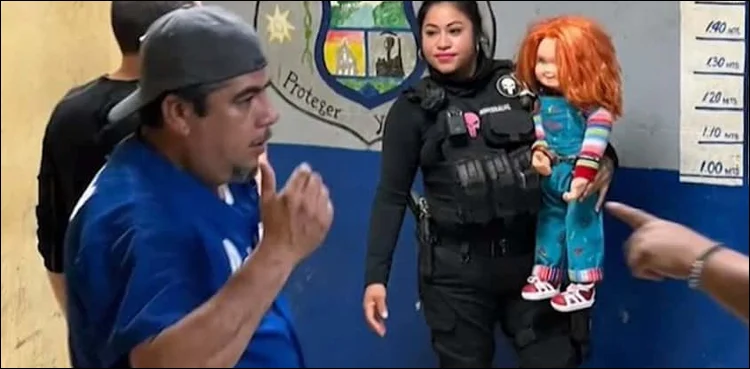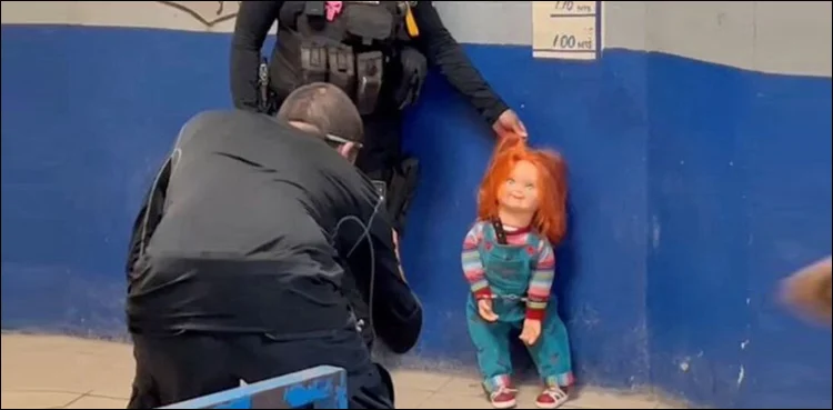 ڈراؤنی فلموں میں ناظرین کو اپنی دہشت کی اسیر بنانے والی شیطانی گڑیا ’چکی‘ حقیقت میں گرفت میں آ گئی، میکسیکو پولیس نے چکی کو گرفتار کر کے ہتھکڑیاں پہنا دیں۔