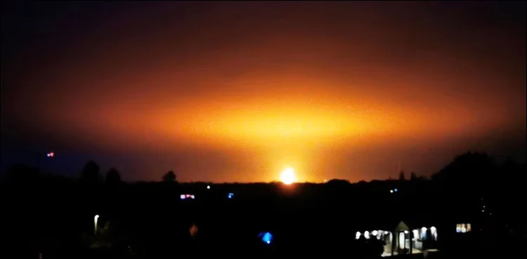 برطانیہ میں آکسفورڈ شائر کے ویسٹ پلانٹ میں آسمانی بجلی گرنے سے بائیو گیس ٹینک ہولناک دھماکے سے پھٹ گیا۔