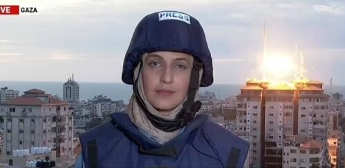 منی السید نے بتایا کہ یہ ایک میزائل حملہ تھا جس میں غزہ کے وسط میں فلسطین ٹاور کو نشانہ بنایا گیا ہے۔ اسٹوڈیو میں موجود اینکر نے انکو ٹیم سمیت محفوظ مقام پر جانے اور سانس بحال کرنے کا کہا۔