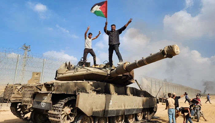ہفتہ کو حماس نے اسرائیل پر 5ہزار راکٹ داغے، اس کے بعد سے فلسطین اور اسرائیل کے درمیان نئی جنگ کا آغاز ہوگیا، آخر کب تک ظلم سہا جاتا، کب تک اسرائیلی سفّاکیت اور درندگی کو برداشت کیا جاتا، جو عرصۂ دراز سے بے گناہ فلسطینی مسلمانوں کا خون کا پیاسا بنا ہوا ہے اور وہاں آئے دن بھرپور جارحیت کا مظاہرہ کرکے بے گناہ فلسطینیوں کو آزار پہنچاتا رہتا ہے۔ بچے اور خواتین بھی اسرائیلی مظالم سے محفوظ نہیں۔ اسپتالوں تک کو یہ درندے نشانہ بنا ڈالتے ہیں، کتنے ہی اطفال اسرائیلی درندہ صفت فوج کی مذموم کارروائیوں کا شکار ہوچکے ہیں۔ نصف صدی سے زائد عرصے سے اسرائیلی مظالم کا سلسلہ دراز ہے، جو تھمنے میں نہیں آتا۔ سب سے بڑھ کر افسوس کی بات تو یہ ہے کہ اسرائیل فلسطین کو لہو لہو رکھتا ہے، لیکن حقوقِ انسانی کے چیمپئن ممالک اور ادارے اس پر خاموش تماشائی کا سا کردار ادا کرتے ہیں، جو کسی جانور کی تکلیف پر تڑپ اُٹھنے میں ذرا دیر نہیں لگاتے، وہ جیتے جاگتے انسانوں کو پہنچنے والے آزار پر گنگ رہتے ہیں۔ بہرحال ظلم جب حد سے بڑھ جاتا ہے تو وہ مٹ جاتا ہے اور یہ دُنیا کی سب سے بڑی حقیقت ہے۔ ظالم چاہے کتنا ہی طاقتور اور بارسوخ کیوں نہ ہو، جب مظلوم اس کے خلاف سینہ سپر ہوجائیں تو اس کی گگھی بندھ جاتی ہے۔ اسرائیل کی حالت اس وقت ایسی ہی ہے۔ ان شاء اللہ اب اس کے ساتھ ایسا معاملہ ہونے والا ہے، جو اسرائیلی تسلط سے فلسطین کی آزادی پر ختم ہوگا۔ حماس کی جانب سے شروع کیا جانے والا ’’آپریشن طوفان الاقصیٰ’’ اسرائیل کا سب کچھ بہالے جائے گا۔ اس وقت فلسطین اور اسرائیل کی صورت حال یہ ہے کہ دونوں جانب سے آتش و آہن برس رہے ہیں، دونوں ممالک میں ہر سُو آگ ہی آگ لگی اور تباہی پھیلی دِکھائی دیتی ہے۔ بڑے پیمانے پر اموات ہوچکی ہیں، جہاں 700 اسرائیلی مارے جاچکے، وہیں 480سے زائد فلسطینی جام شہادت نوش کرچکے ہیں۔میڈیا رپورٹس کے مطابق اسرائیل اور فلسطینی تنظیم حماس کے درمیان جھڑپیں جاری ہیں جب کہ حزب اللہ نے بھی لبنان سے صہیونی ریاست کو نشانہ بنانا شروع کردیا ہے۔ دو دن سے جاری لڑائی میں 700اسرائیلی ہلاک اور 480سے زائد فلسطینی شہید ہوگئے ہیں۔ عالمی خبر رساں ادارے کے مطابق حماس کے اچانک حملے کے بعد سے اسرائیلی فوج اب تک سنبھل نہیں پائی ہے۔ جھڑپوں میں اسرائیلیوں کی ہلاکت کی تعداد 700سے تجاوز کر گئی ہے، جن میں 100سے زائد فوجی کمانڈر اور اہلکار شامل ہیں۔ دوسری جانب اسرائیلی فوج نے بزدلانہ کارروائی میں غزہ میں حماس کے کمانڈرز کے گھروں پر رات بھر بم باری کی۔ ہر طرف تباہی کے مناظر ہیں۔ ان حملوں میں 41بچوں سمیت 480سے زائد فلسطینی شہید، 2300سے زائد زخمی ہوچکے ہیں۔ غیر ملکی میڈیا کے مطابق فلسطینی مزاحمتی تحریک حماس کا آپریشن طوفان الاقصیٰ اپنی پوری شدت کے ساتھ جاری ہے۔ اس آپریشن میں اسرائیل پر زمین، سمندر اور فضا سے مسلسل حملے جاری ہیں۔ اسرائیلی حکام نے ہلاکتوں کی تصدیق کردی ہے۔ فورسز سے جھڑپیں بھی جاری ہیں۔ اسرائیل نے غزہ کے لیے فیول، اشیا اور بجلی کی سپلائی معطل کردی ہے، بجلی کی تمام پاور لائنوں کے فیل ہونے سے غزہ کی پٹی مکمل تاریکی میں ڈوب گئی ہے جب کہ عرب میڈیا کے مطابق رات گئے حماس کی جانب سے عسقلان میں اسرائیلی فوجی اڈے پر حملہ کیا گیا، حماس نے اسرائیلی فوجی اڈے پر حملے کی ویڈیو بھی جاری کی ہے۔ حماس کے مزاحمت کاروں نے فوجی اڈے میں موجود بکتربند اور بھاری ہتھیاروں پر قبضہ کیا، اس دوران 15اسرائیلی ہلاک ہوگئے جب کہ اسرائیلی فوج کی فائرنگ سے حماس کے 4ارکان شہید ہوگئے۔ عرب میڈیا کے مطابق اسرائیل کے 8شہروں میں اب بھی اسرائیلی فوجیوں اور حماس کے مزاحمت کاروں کے درمیان لڑائی جاری ہے۔ امریکی ٹی وی کے مطابق حماس نے ایک اور اسرائیلی شہر پر راکٹوں سے حملہ کیا ہے جبکہ حماس کے سربراہ اسماعیل ہنیہ کا کہنا ہے غزہ میں کامیابی کے بعد یہ جنگ مغربی کنارے اور یروشلم تک جائے گی اور اپنی سرزمین سے قابضین کے خاتمے تک جاری رہے گی۔ ادھر لبنان کی حزب اللہ نے بھی اسرائیلی سرزمین پر مارٹر شیلز سے حملے کئے ہی