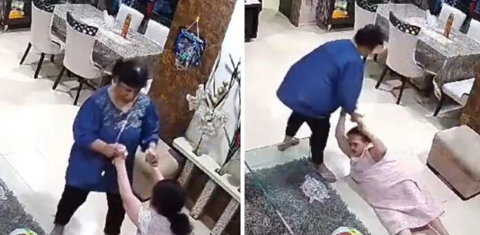وائرل ہونے والی ویڈیو میں دیکھا جاسکتا ہے کہ ایک خاتون اپنی ساس کو گھر سے باہر نکالنے کے لئے گھسیٹ رہی ہے،جس سے خاتون کی ساس زمین پر گر جاتی ہے، ویڈیو میں ایک تیسری خاتون کو بھی دیکھا جا سکتا ہے جو گھر میں کام کرتی نظر آرہی ہے، مگر وہ مداخلت نہیں کرتی۔