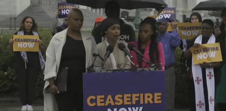 امریکی رکن کانگریس الہان عمر نے اپنی ایک رکن رچی کے ہمراہ پریس کانفرنس کی جہاں انہوں کہا کہ آپ لوگوں کو اور غزہ سے کتنی لاشیں چاہیں، ہزار، دوہزار ، کتنی، کیا اتنے فلسطینیوں کی لاشیں آپ کو خوش کرنے کے لیے کم ہے؟۔