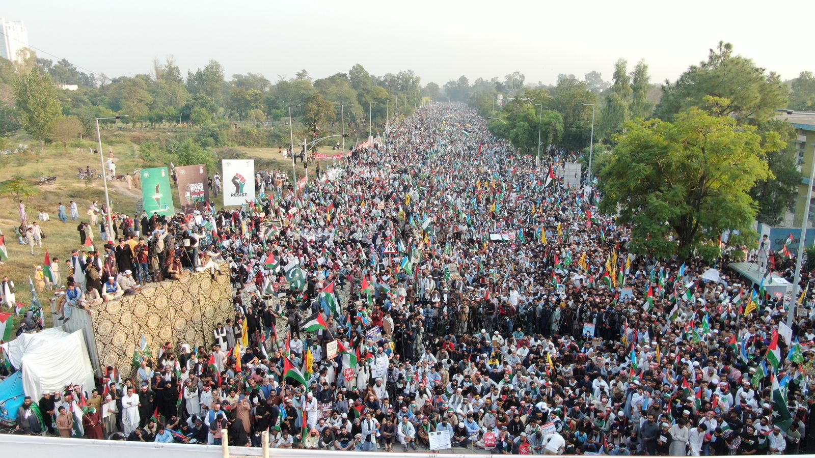 اسلام آباد میں امریکی سفارت خانہ کے سامنے غزہ کے حق میں پاکستان کے سب سے بڑے مارچ کے فضائی مناظر#PakistanGazaMarch pic.twitter.com/3uF3EHGJ5o