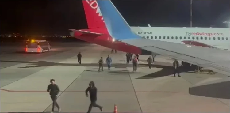 مقامی خبروں میں بتایا گیا ہے کہ مذکورہ طیارے کا تعلق روسی کیریئر ریڈ ونگز سے تھا۔ سوشل میڈیا فوٹیج میں خوف زدہ مسافروں کو دکھایا گیا ہے کہ وہ مخاچ قلعہ ہوائی اڈے کے رن وے پر ہنگامہ آرائی کے درمیان جہاز میں دوبارہ داخل ہونے کے لیے بھاگ رہے ہیں۔