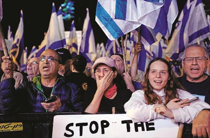 مظاہرین نے مطالبہ کیا کہ نیتن یاہو اس ملک کیلئےکینسر بن چکا ہے، اس کو نکالنا ہوگا، اس کو ہٹایانہیں گیا، تو مسئلہ کبھی حل نہیں ہوگا۔ ہمارا وجود مٹ جائے گا، ہم کبھی دوبارہ کھڑے نہیں ہوپائیں گے۔