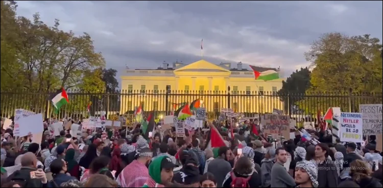 امریکی دارالحکومت میں وائٹ ہاؤس کے سامنے فلسطینیوں سے اظہار یکجہتی کے لیے ہزاروں افراد نے احتجاج کیا، جس میں یہودیوں کی بڑی تعداد نے بھی شرکت کی۔