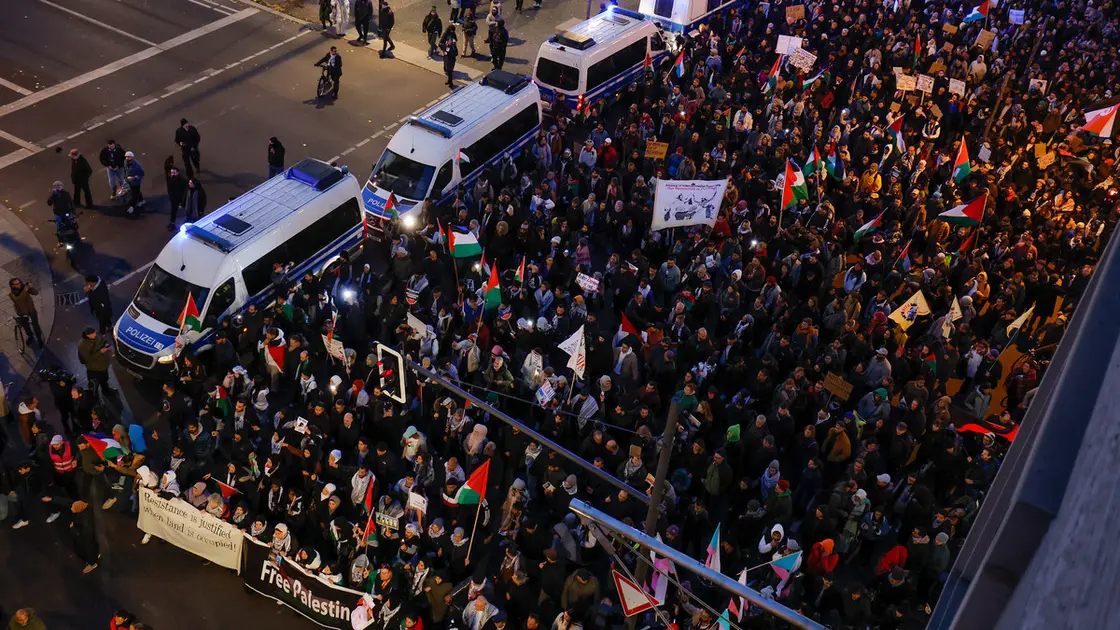 جرمنی کے دارالحکومت برلن میں ہزاروں شہری فلسطینیوں کے حق میں اور غزہ پر مسلسل اسرائیلی بمباری کے خلاف مظاہرہ کرنے کے لیے سڑکوں پر نکل آئے۔ یہ مظاہرہ ہفتے کے روز کیا گیا۔