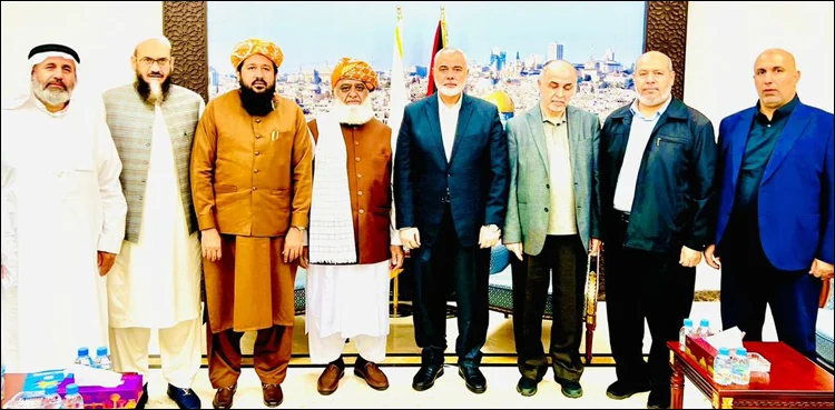 جمعیت علمائے اسلام ف کے سربراہ مولانا فضل الرحمان نے قطر میں حماس رہنماؤں خالد مشعل اور اسماعیل ہانیہ سے ملاقات کی ہے۔