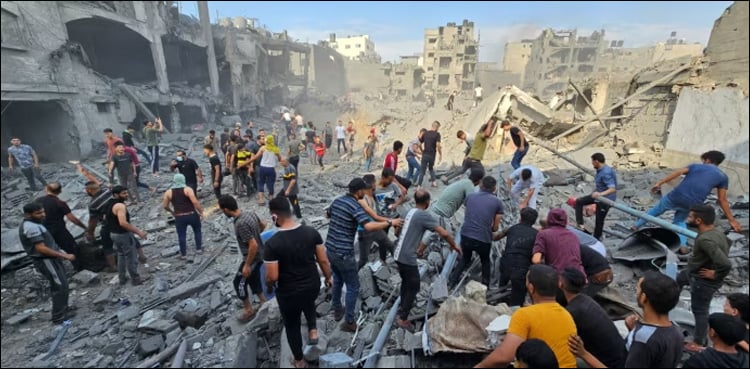 انہوں نے کہا کہ غزہ ملبے میں تبدیل ہو گیا زندہ بچ جانےوالوں کی تلاش جاری ہے انسانی اقدار کے علمبردار جارحیت رکوانےکیلئےاقدامات کریں۔