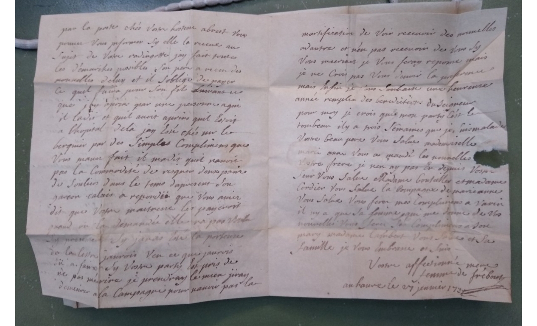 27 جنوری 1758 کی ایک اور یادداشت میں نارمنڈی سے تعلق رکھنے والے نوجوان ملاح نکولس کوئسنل کی 61 سالہ والدہ مارگریٹ ان سے رابطے کی کمی کی شکایت کر رہی تھیں۔