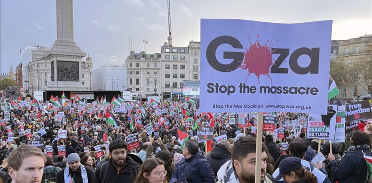 برطانیہ میں فلسطین کےحق میں آواز اٹھانا جرم بن گیا۔جنگ عظیم کی یادگار سینوٹاف کے قریب جانے پر پابندی عائد کر دی گئی۔