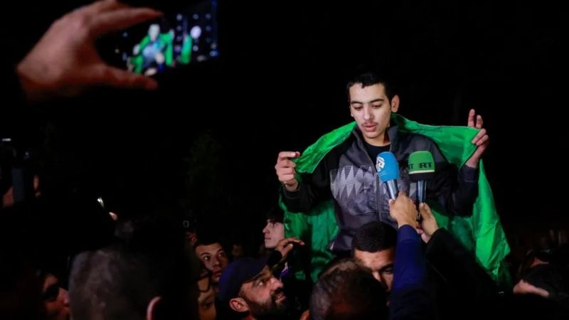 غزہ میں حماس کی جانب سے بنائے گئے یرغمالیوں میں سے چند افراد کی رہائی کے کچھ گھنٹوں بعد اسرائیل نے فلسطینی قیدیوں کو رہا کیا۔