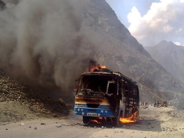 پولیس کے مطابق فائرنگ کے بعد بس بے قابو ہوکر ٹرک سے ٹکرائی جس کے باعث بس میں آگ بھڑک اٹھی، بس ضلع غذر سے راولپنڈی جارہی تھی۔