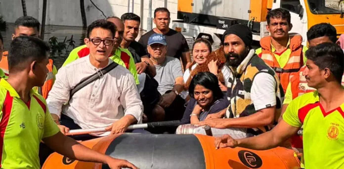 طوفانی بارش کے دوران پھنسے عامر خان کو ریسکیو ورکرز نے بچالیا