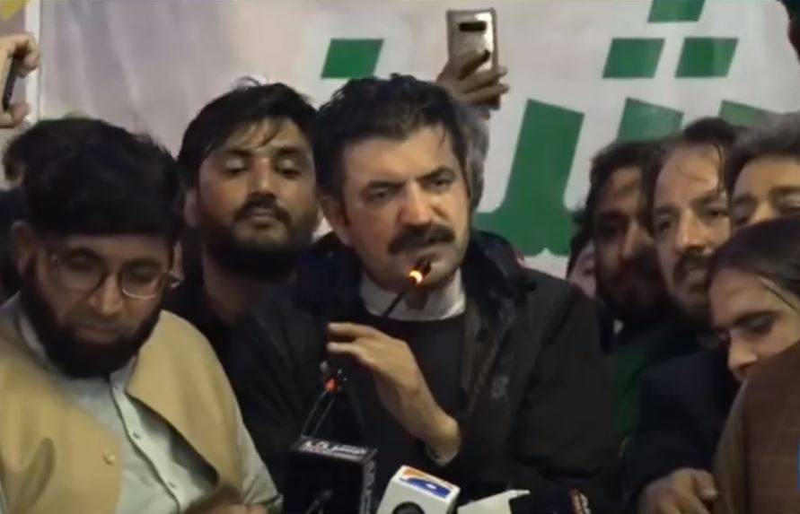 شیر افضل مروت نے مخاطب کرتے ہوئے کہا کہ ’پرویز خٹک سن لیں کل ہم آپ کو ڈبونے کیلیے نوشہرہ آرہے ہیں، جہاں آپ کے بلند و بانگ دعوؤں کو غرق یاب کریں گے، ہم نے تمام پابندیوں کو توڑ ڈالا ہے کل ہم نوشہرہ جائیں گے، جن کو غلطی تھی خان کی کمی نواز، خٹک اور ترین سے پوری ہوگی یہ تینوں وڑ گئے ہیں۔