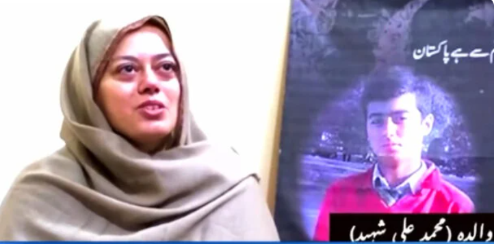 سانحہ اے پی ایس کو 9 سال مکمل ہونے کے بعد بھی شہدا کے لواحقین کا حوصلہ پہاڑ جیسا بلند ہے، والدہ شہید محمدعلی نے کہا کہ میرا بیٹا ایس ایس جی کمانڈو بننا چاہتا تھا، اس نے لڑائی لڑی مگر زندگی نے وفا نہ کی۔