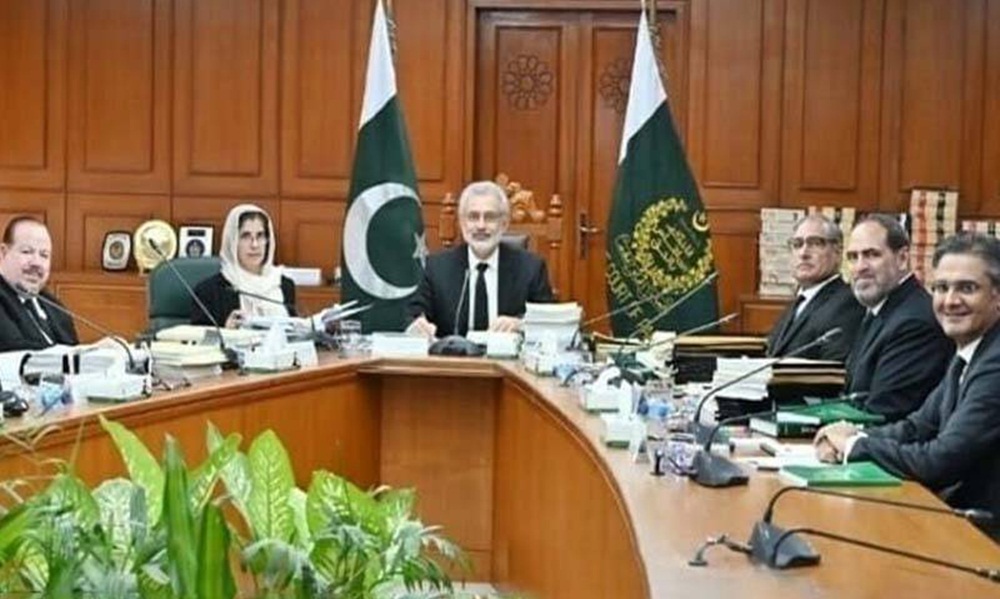 چیف جسٹس پاکستان نے کہاکہ جسٹس اعجازالاحسن اجلاس میں بیٹھنا نہیں چاہتے،چیف جسٹس پاکستان نے اٹارنی جنرل کو مظاہرعلی اکبر نقوی کا استعفیٰ پڑھنے کی ہدایت کی جس پر اٹارنی جنرل نے جسٹس مظاہرعلی اکبر نقوی کے استعفیٰ کا متن پڑھ کر سنایا،متن میں کہا گیاہے کہ صدر مملکت کی منظوری کے بعد وزارت قانون و انصاف نے استعفیٰ منظوری کا نوٹیفکیشن جاری کیا۔