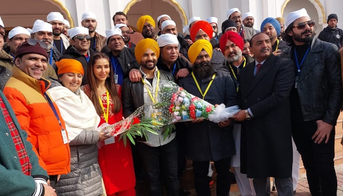 بھارتی فنکار دربار صاحب کرتار پور پہنچے، جہاں پاکستانی فنکاروں نے بھارتی فنکاروں کے وفد کا والہانہ استقبال کیا۔