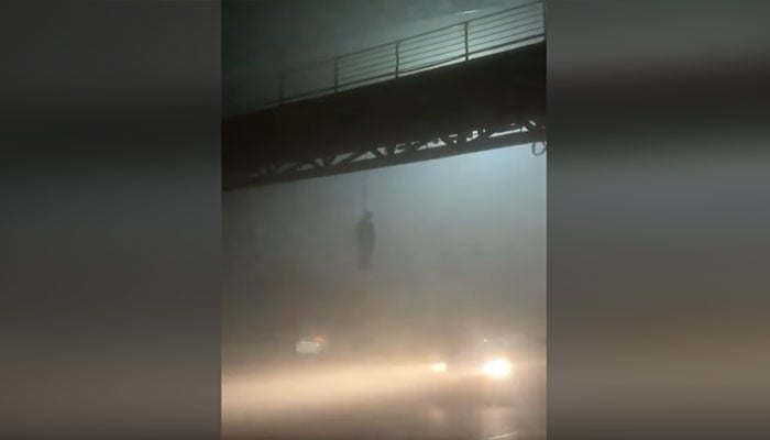 دھند کے باعث لاش کئی گھنٹے پل سے لٹکی جھولتی رہی اور اس دوران پل کے نیچے ٹریفک رواں دواں رہا۔