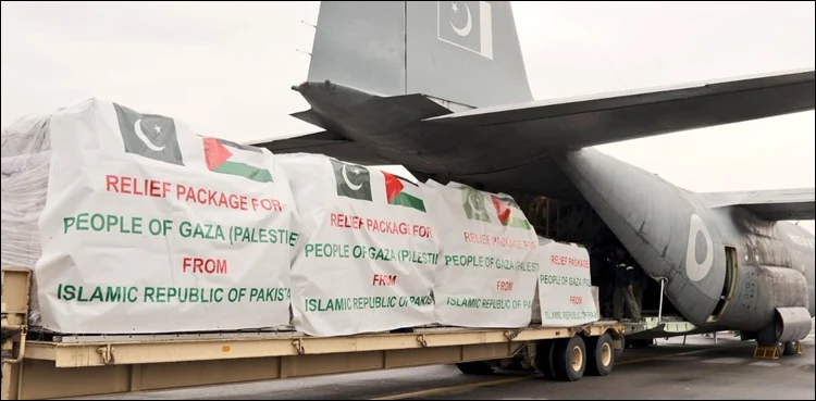 غزہ کے لیے پاکستان سے امدادی سامان کی پانچویں کھیپ روانہ