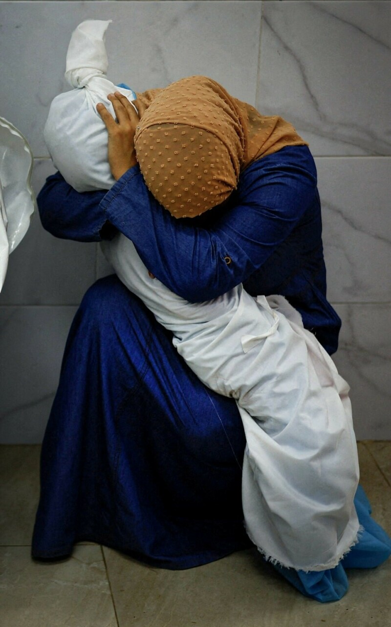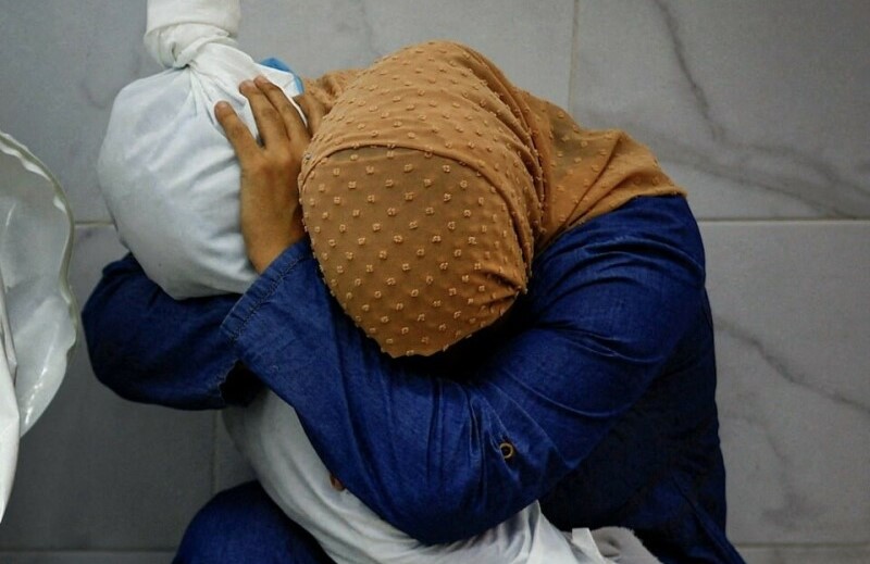 اس تصویر کی کہانی بھی روئیٹرز نے جاری کی۔ خبر ایجنسی کے فوٹوگرافر 17 اکتوبر کو خان یونس کے اسپتال میں تھے جب انہوں نے ایک جوان سال خاتون کو ایک بچے کی میت کو آغوش میں لیے کونے میں بیٹھے دیکھا۔