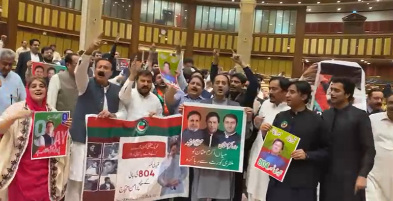 تحریک انصاف کے ارکان کا پنجاب اسمبلی میں احتجاج، عمران خان کی رہائی کا مطالبہ