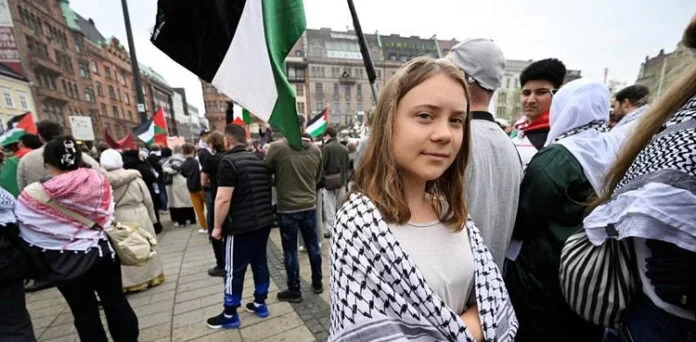 گریٹا تھنبرگ بھی اسرائیل کیخلاف مظاہرے میں شامل