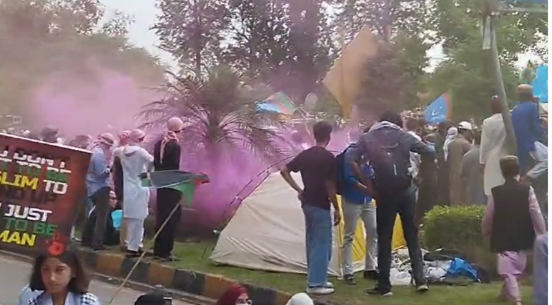 ترجمان اسلام آباد پولیس کا کہنا ہے کہ مظاہرین کے ریڈ زون میں داخلے کی کوشش کی ہے۔ امن و امان قائم رکھنے کے لیے اسلام آباد پولیس الرٹ ہے۔ ریڈ زون میں مظاہرین کو داخلے کی اجازت نہیں دی جا سکتی۔