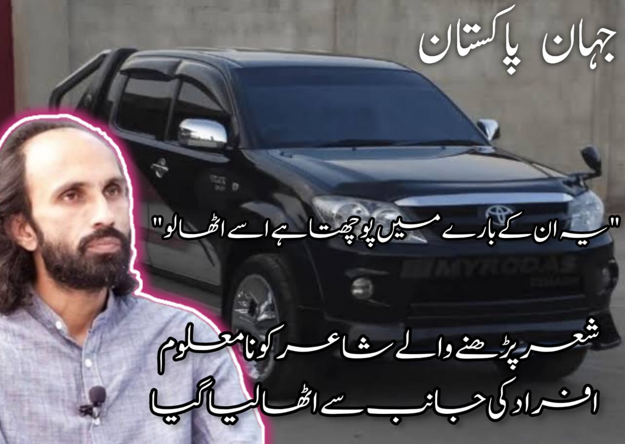 ” یہ ان کے بارے میں پوچھتا ہے اسے اٹھا لو ” شعر پڑھنے والے شاعر کو نامعلوم افراد کی جانب سے اٹھا لیا گیا