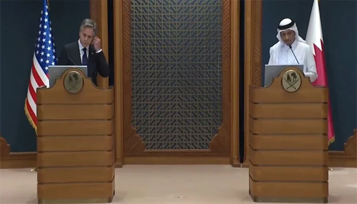 دورہ قطر کے دوران دوحہ میں قطر کے وزیراعظم شیخ محمدبن عبدالرحمان کے ساتھ پریس کانفرنس سے خطاب کرتے ہوئے امریکی وزیرخارجہ نے مزید کہا کہ اب بات چیت روک کر جنگ بندی شروع کرنے کا وقت ہے۔
