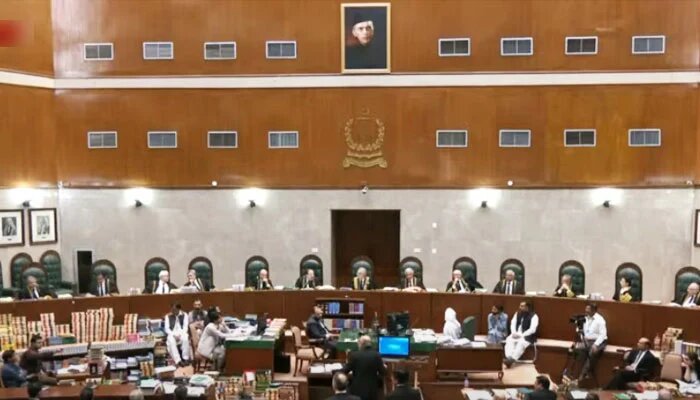 ڈان نیوز کے مطابق چیف جسٹس قاضی فائز عیسیٰ کی سربراہی میں 13 رکنی فُل کورٹ کیس کی سماعت کررہا ہے۔