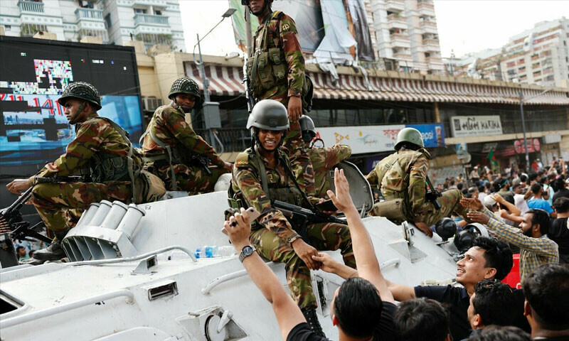 حسینہ واجد ڈھاکا میں اپنی رہائش گاہ سے بھارت روانہ ہوئیں تھیں، بنگلہ دیش کے آرمی چیف نے قوم سے خطاب کرتے ہوئے حکومتی سربراہ کے استعفے کی تصدیق کی اور ملک میں عبوری حکومت قائم کرنے کا اعلان کیا تھا۔