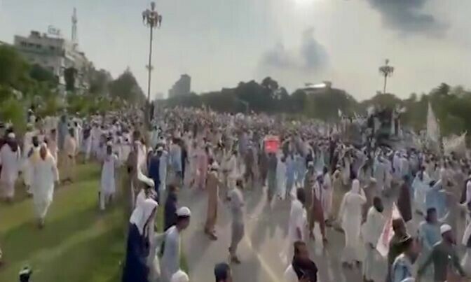 اسلام آباد کے ڈی چوک پر جاری مذہبی جماعتوں کے کارکنان نے احتجاج کے دوران مظاہرین نے پارلیمنٹ کے سامنے سگنل توڑ دیے اور ریڈ زون کی جانب بڑھنے لگے۔