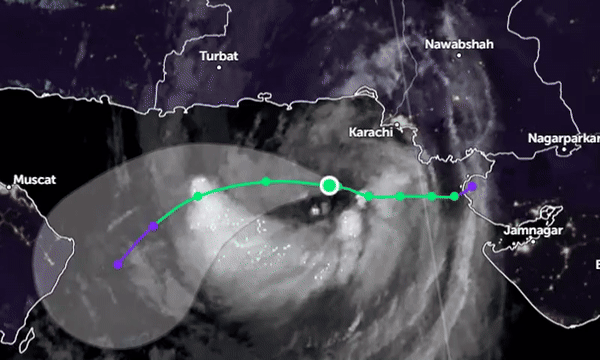 قبل ازیں محکمہ موسمیات کی جانب سے دوپہر ایک بجے جاری کیے گئے الرٹ کے مطابق سندھ کے ساحل سے شمال مشرقی بحیرہ عرب پر بننے والا طوفان گزشتہ 6 گھنٹوں کے دوران مسلسل مغرب کی جانب بڑھ رہا ہے، جو اب کراچی سے تقریباً 230 کلومیٹر دور، اورماڑہ سے 180 کلومیٹر اور گوادر سے 300 کلومیٹر کے فاصلے پر ہے۔