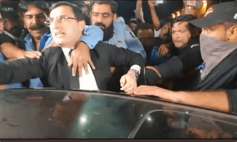 پولیس نے شیر افضل مروت کی گاڑی کو پارلیمنٹ ہاؤس کے باہر روکا اور ان کے ساتھ ساتھ ان کے گارڈ کو بھی گرفتار کر لیا۔