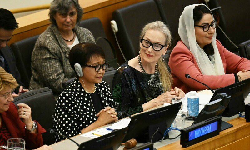 خبر رساں ادارے ’ایجنسی فرانس پریس‘ (اے ایف پی) کے مطابق میرل اسٹریپ نے اقوام متحدہ کی جنرل اسمبلی کے اجلاس سے خطاب کرتے ہوئے افغان خواتین سے اظہار یکجہتی کیا۔