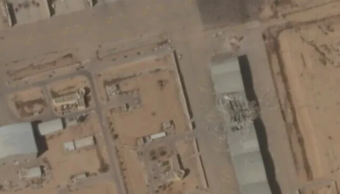 سیٹیلائٹ تصاویر میں اسرائیلی ایئر بیس کے مرکزی رن وے کے قریب طیاروں کے ہینگر میں چھت کو پہنچنے والے نقصان کو دیکھا جاسکتا ہے۔