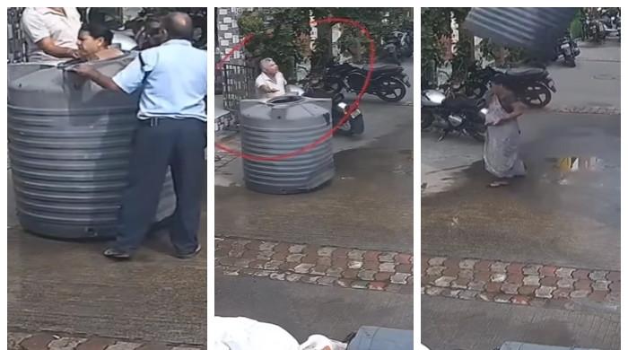 بھارتی میڈیا کے مطابق سوشل میڈیا پر ایک ویڈیو سامنے آئی ہے جو بھارت کے کسی شہر کی ہے ، ویڈیو میں ایک خاتون پر اپنی ہی گلی میں گھر کے سامنے پلاسٹک کا واٹر ٹینک آگِرتا ہے۔