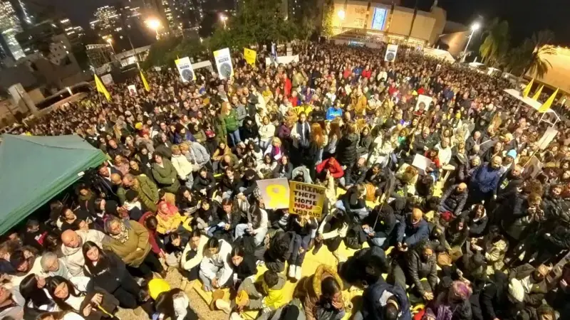 تل ابیب میں اسرائیلیوں کی بڑی تعداد جمع، یرغمالیوں کی رہائی کا مطالبہ
