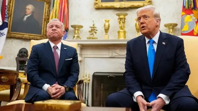 اردن کے شاہ عبداللہ کے ساتھ ملاقات کے دوران صدر ٹرمپ نے غزہ کے باشندوں کو ہمسائیہ ممالک (مصر اور اردن) میں بسانے کا منصوبہ دہرایا۔