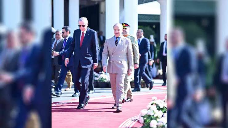 گزشتہ روز رات دیر گئے ترک صدر خاتون اول اور سرمایہ کاروں اور تاجر رہنماؤں کے ہمراہ نور خان ائیر بیس پہنچے تھے جہاں صدر پاکستان آصف علی زرداری اور وزیراعظم شہباز شریف نے ان کا شاندار استقبال کیا گیا۔