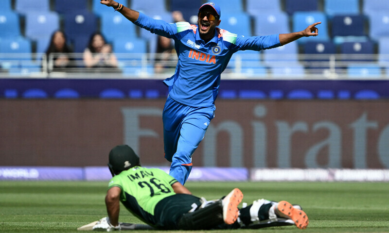 دبئی کرکٹ اسٹیڈیم میں کھیلے جانے والے میچ میں بھارتی ٹیم کھیل کے ہر شعبے میں پاکستانی ٹیم پر حاوی رہی جب کہ شاہینوں نے ناقص بیٹنگ کے بعد باؤلنگ اور فیلڈنگ میں بھی قوم کو مایوس کیا۔