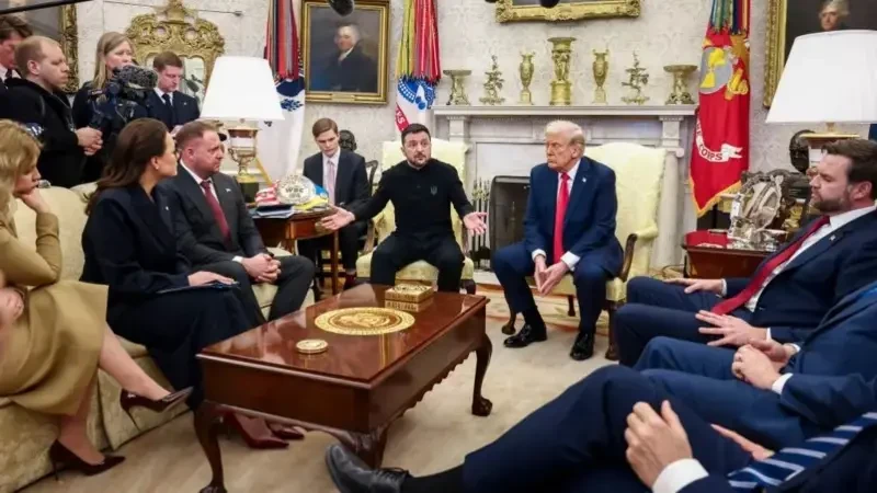 جمعے کو وائٹ ہاؤس میں میڈیا نمائندوں کے سامنے ہونے والی بات چیت میں اس وقت ماحول گرم ہوا جب امریکی صدر ٹرمپ نے یوکرینی صدر سے کہا کہ ’روس کے ساتھ معاہدہ کریں ورنہ ہم پیچھے ہٹ جائیں گے۔‘