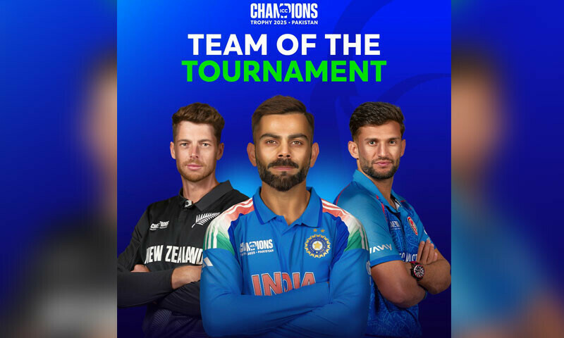 انٹرنیشنل کرکٹ کونسل (آئی سی سی) نے چیمپئنز ٹرافی 2025 کی ٹیم آف دی ٹورنامنٹ کا اعلان کردیا جس میں حیران کن طور پر سیمی فائنل کھیلنے والی دونوں ٹیموں سے بھی کسی کھلاڑی کو نہیں لیا گیا۔