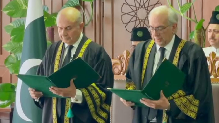 جسٹس منصور علی شاہ نے قائم مقام چیف جسٹس پاکستان کے عہدے کا حلف اٹھا لیا۔