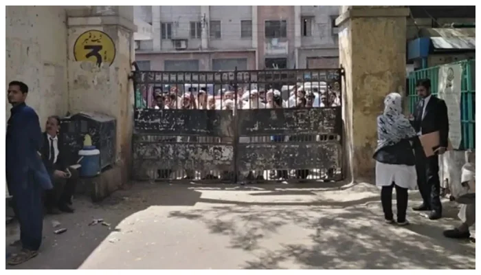 وکلا نے سندھ ہائیکورٹ کی مرکزی عمارت کے دروازے بندکردیے اور سائلین سمیت سرکاری عملے کو عدالتوں میں داخل ہونے سے روک دیا جب کہ سٹی کورٹ کے مرکزی دروازے بھی بند کردیے گئے ہیں۔