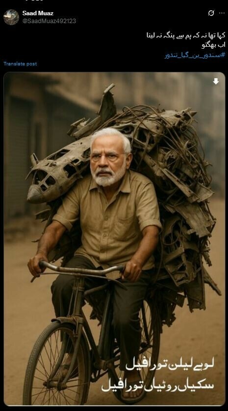 ایک صارف نے تو مودی کو ہی شان ٹکڑے والا بنا ڈالا جو رافیل طیاروں کے ٹکڑے لے کر سائیکل پر بیچنے نکلا ہے۔